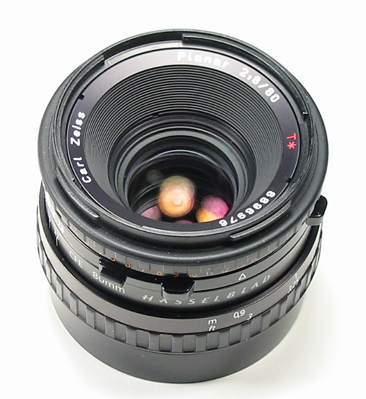 The Zeiss 80mm CFE was of course the standard lens with any Hasselbad "V" series camera such as the 503cw. With a "normal" perspective equal to about 40mm on a 35mm camera (some would say 50mm if you consider the 6x6cm format to only have a 6x4.5cm "useable" area if cropping to a rectangular format) this is the lens that will be used most often. I've shot landscapes, small group portraits and single, full-length portraits with this lens. Like with many other Zeiss lenses, the optical and mechanical quality are superb. Color rendition is uncannily accurate, and distortion is not visible (at least to my eyes!) The pictures are extremely sharp but I have noticed that it is very difficult to focus accurately at semi-close distances with living subjects when using apertures at f/5.6 or larger. This is due to the fact that medium format requires a smaller apterture to achieve the same depth-of field with the same perspective, because of the longer focal length. This lens takes Bay 60 filters, however I use a Bay 60 to 67mm threaded filter adapter.