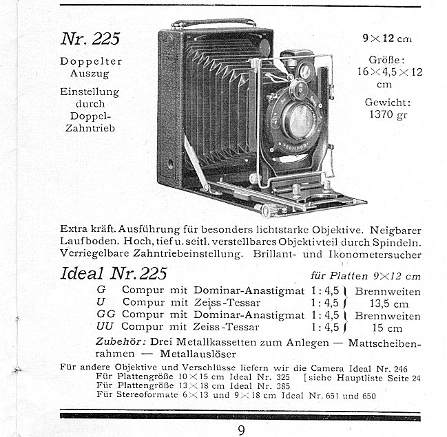 This camera, rescued from an antique store in Niantic, CT, is an Ica Ideal 225, a German camera from the 1920s, which uses 9x12cm sheet film. Here is the page from a 1922 catalog of Ica cameras listing this model. This example has an uncoated yet wonderful Zeiss Tessar 135mm f/4.5 with a Compur shutter offering speeds of 1 sec. to 150th. Since obtaining this camera, I have seen this same lens/shutter assemby elsewhere, but the front and rear elements were single-coated. Here's a nice page on this camera.